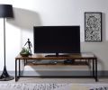 Add a touch of modern flair to your living room with this Kersey TV stand. Expertly crafted from selected wood and metal tube, this piece features a shelf for accommodating a cable box, media accessories or remotes. With the open back design, cables can run through easily.