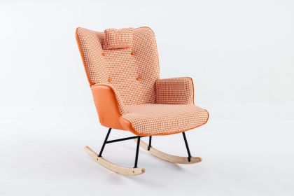 35.5 inch Rocking Chair, Soft Houndstooth Fabric Leather Fabric Rocking Chair for Nursery, Comfy Wingback Glider Rocker with Safe Solid Wood Base for (Color: Pink, Material: Cotton linen)