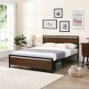 Full Size Bed Frame with Headboard and Footboard, Rustic Metal Platform Bed Frames