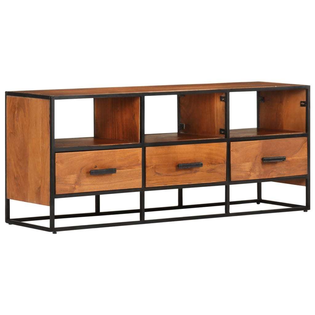 Equipped with 3 drawers and 3 shelves; this sideboard provides ample space for keeping your magazines; books; as well as various other small items within reach. Made of solid acacia wood with a natural finish; this HiFi cabinet exudes an original look. The exquisite craftsmanship and the beautiful acacia wood grains make every piece of furniture unique and slightly different from the next. Additionally; the powder-coated iron frame contributes to the stable and sturdy structure and adds to the stereo cabinet's industrial style as well.