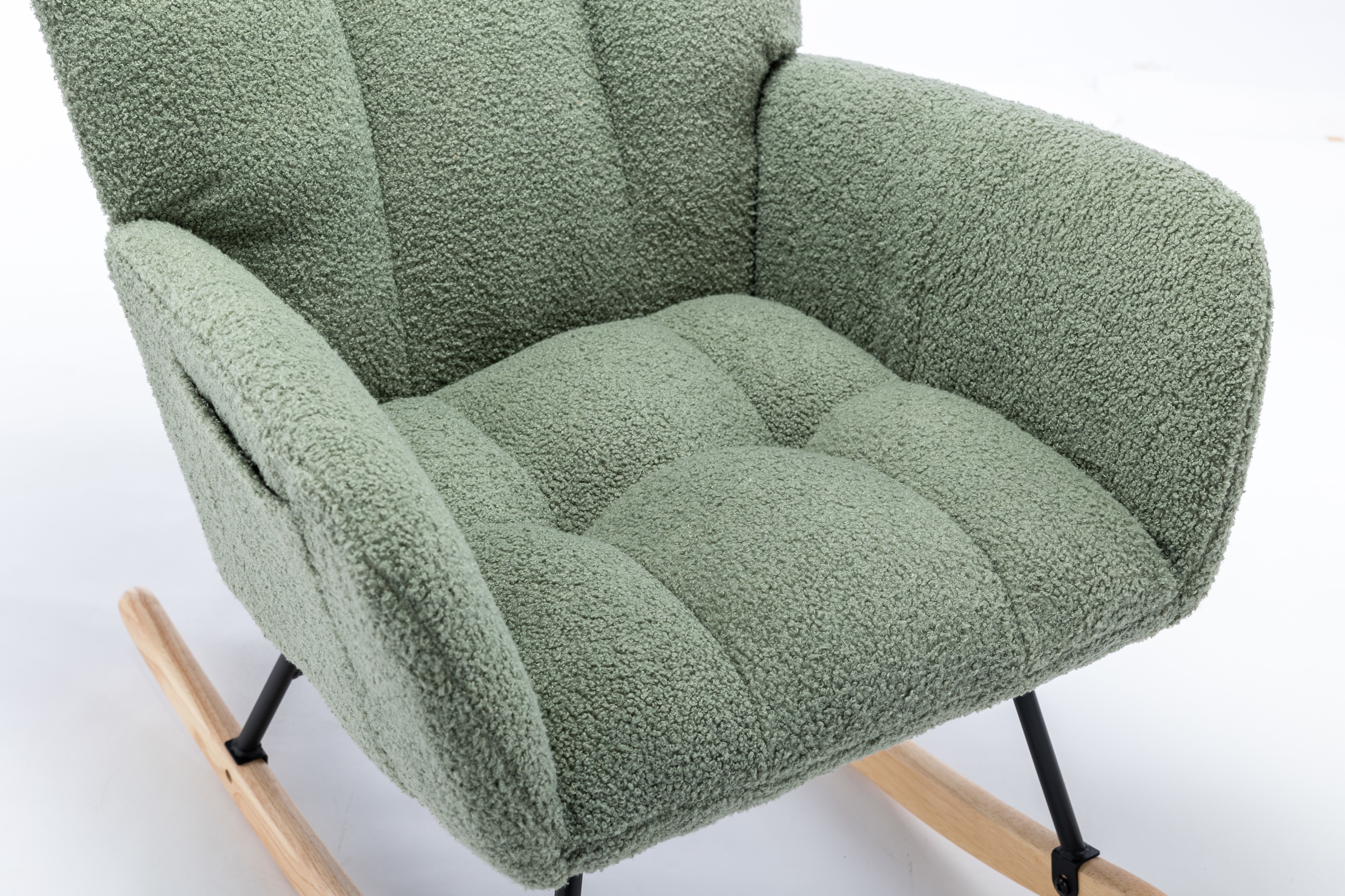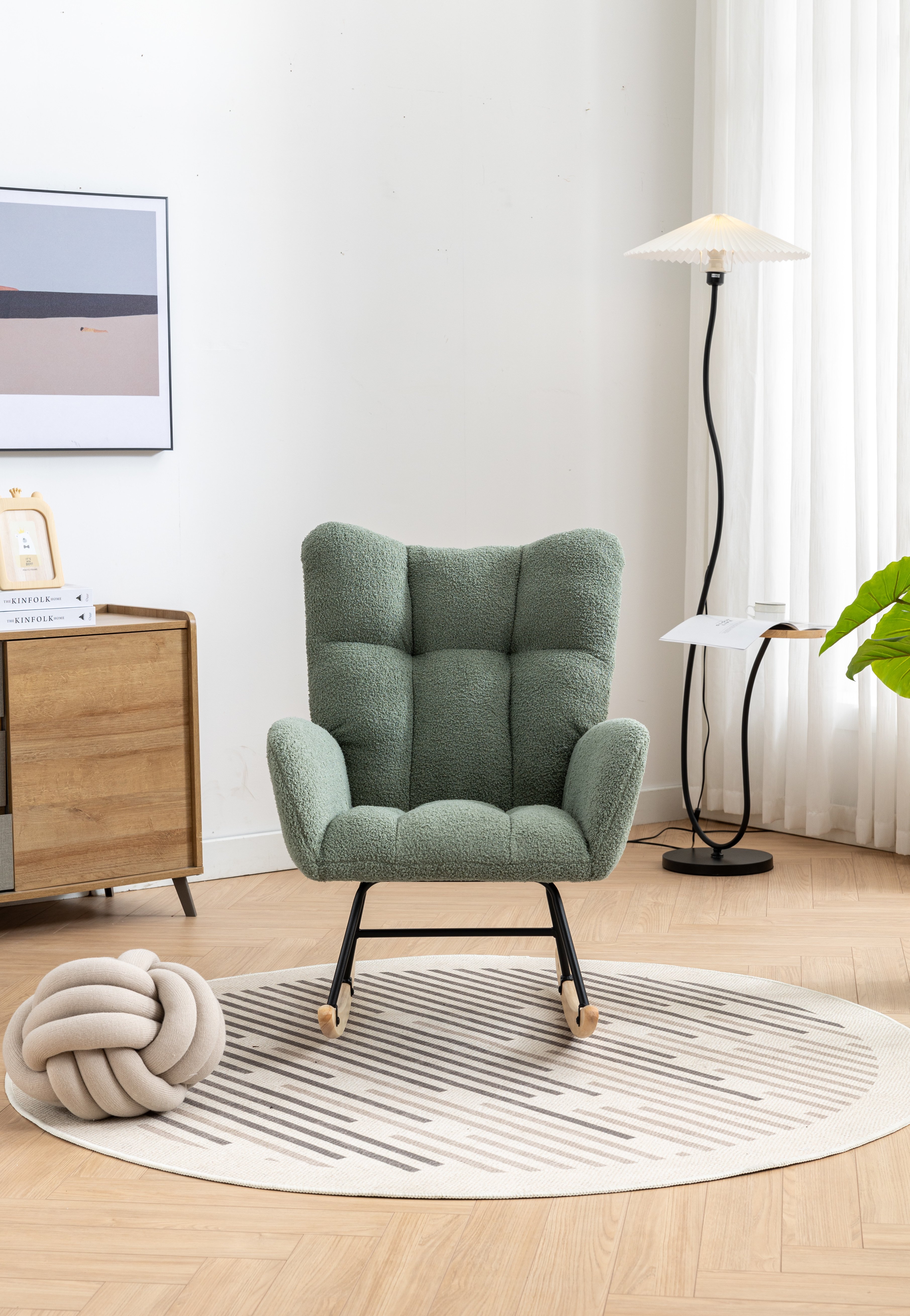 Home > Rocking Chair, Soft Teddy Velvet Fabric Rocking Chair for Nursery, Comfy Wingback Glider Rocker with Safe Solid Wood Base for Living Room Bedroom Balc