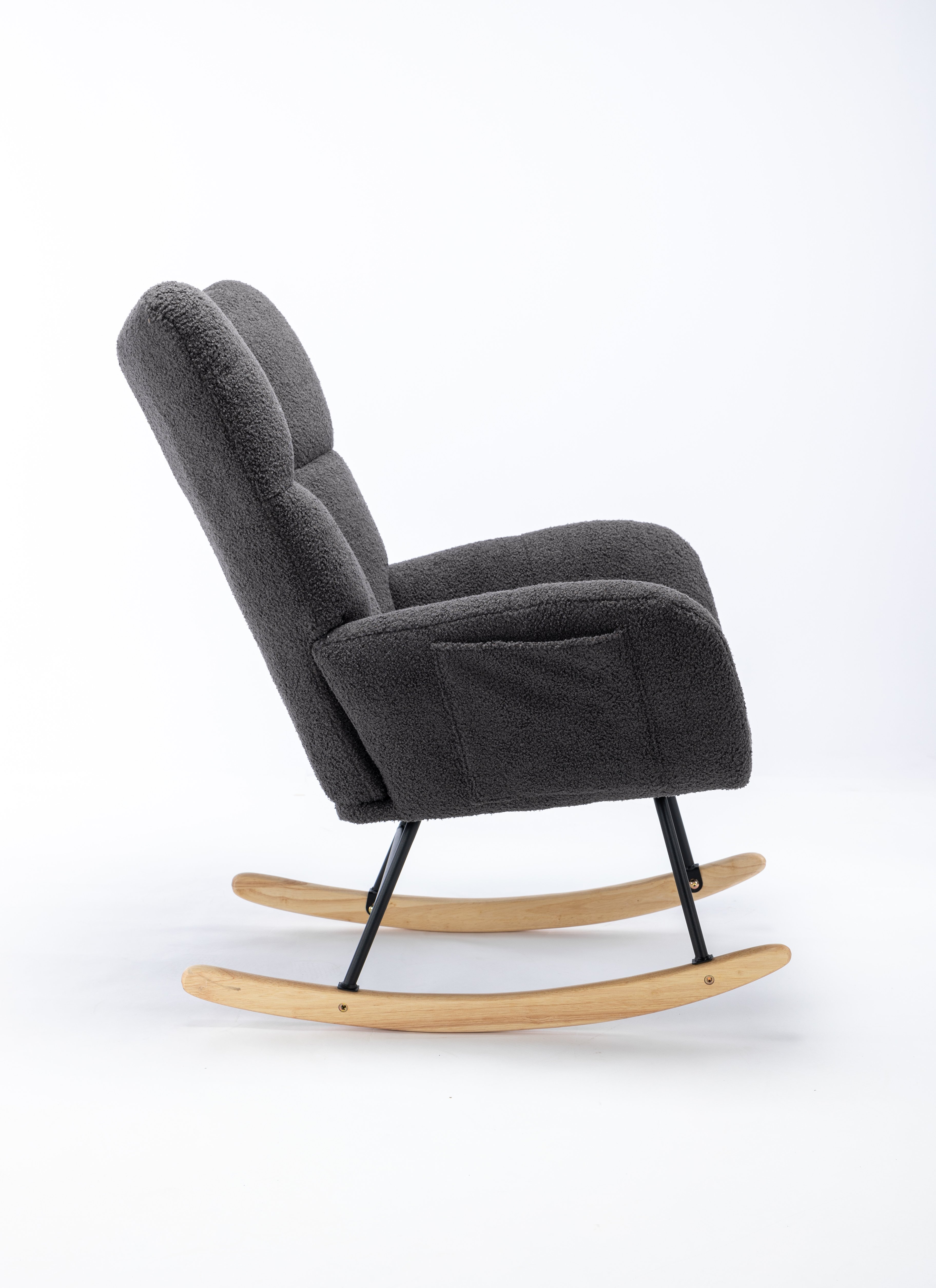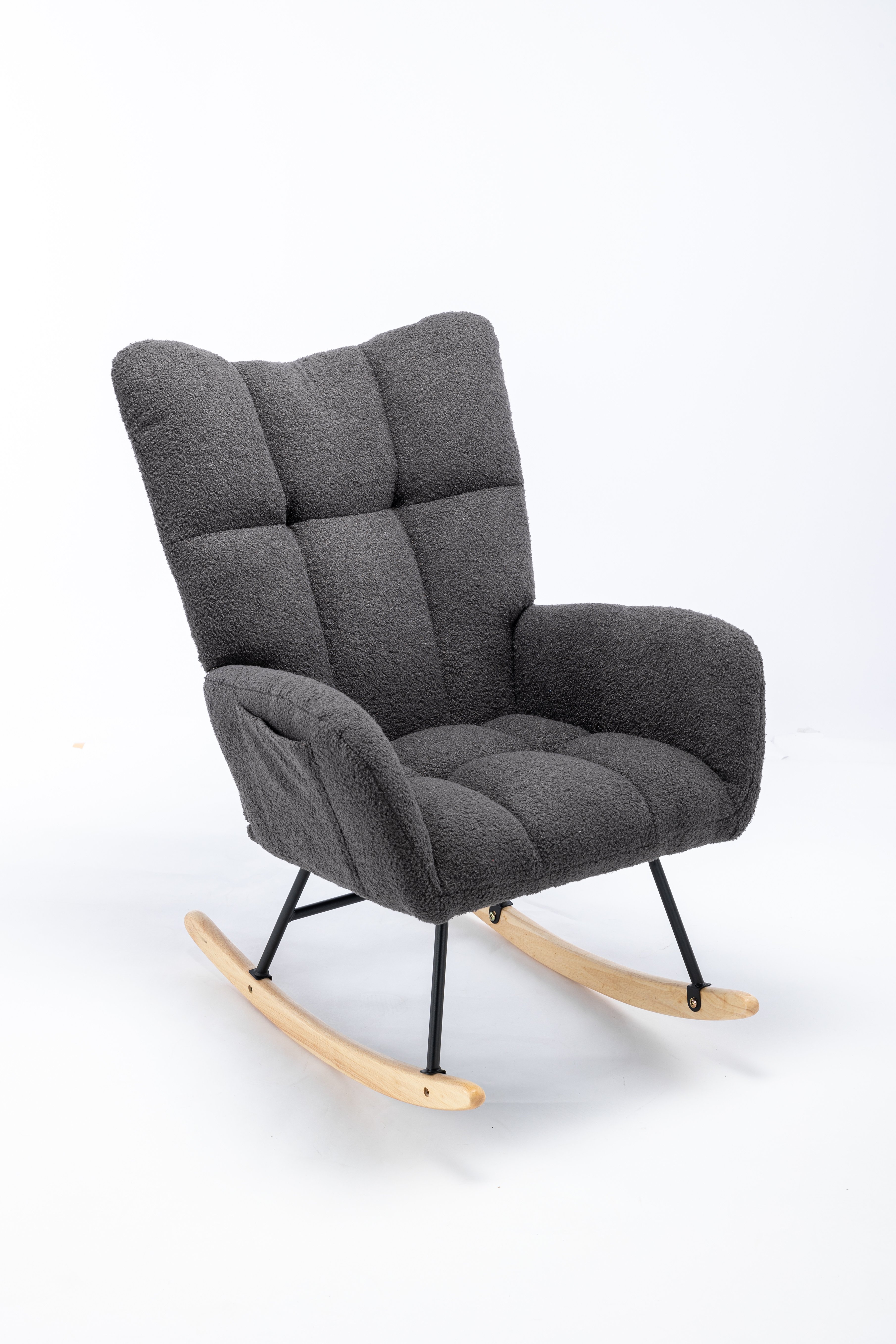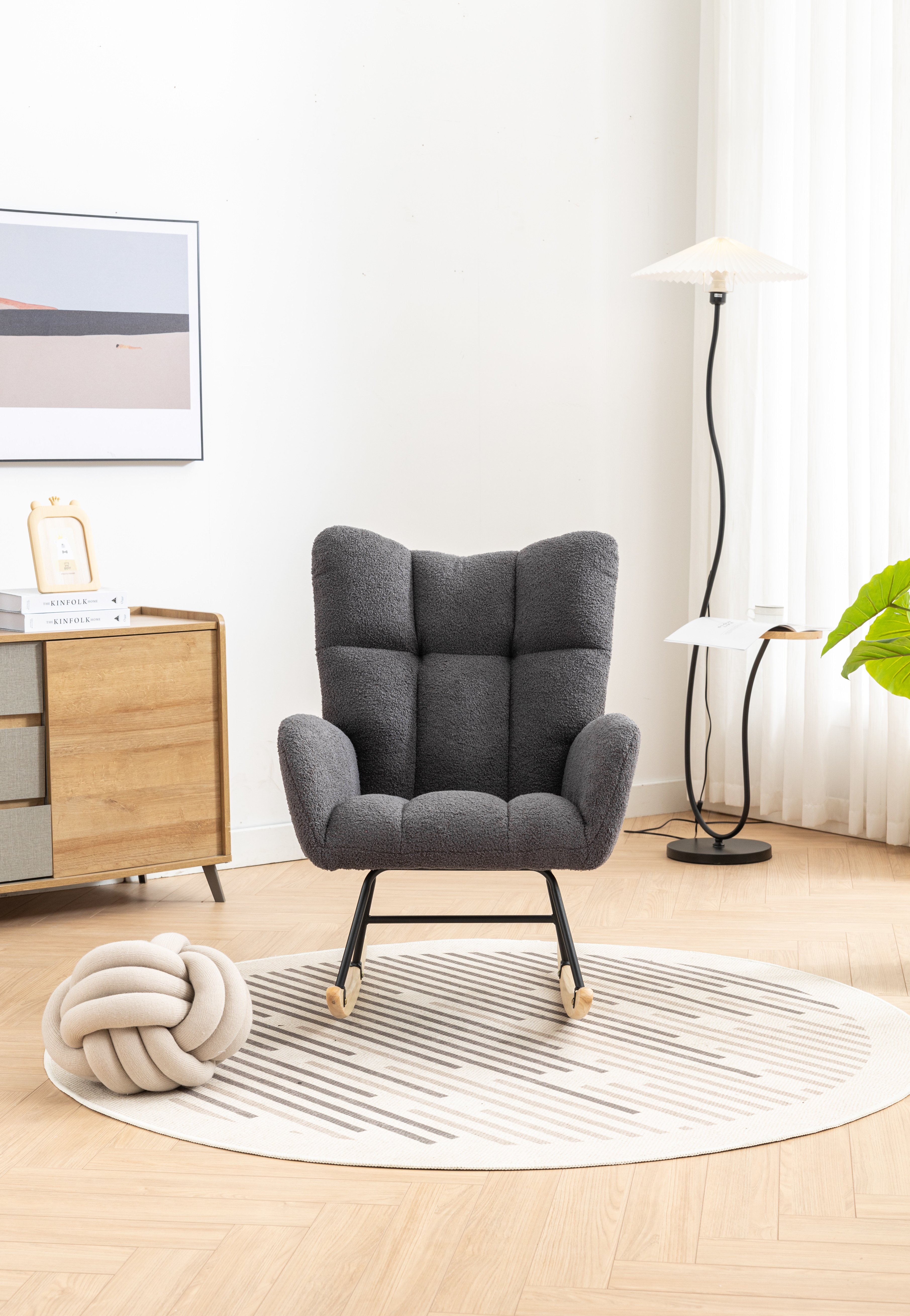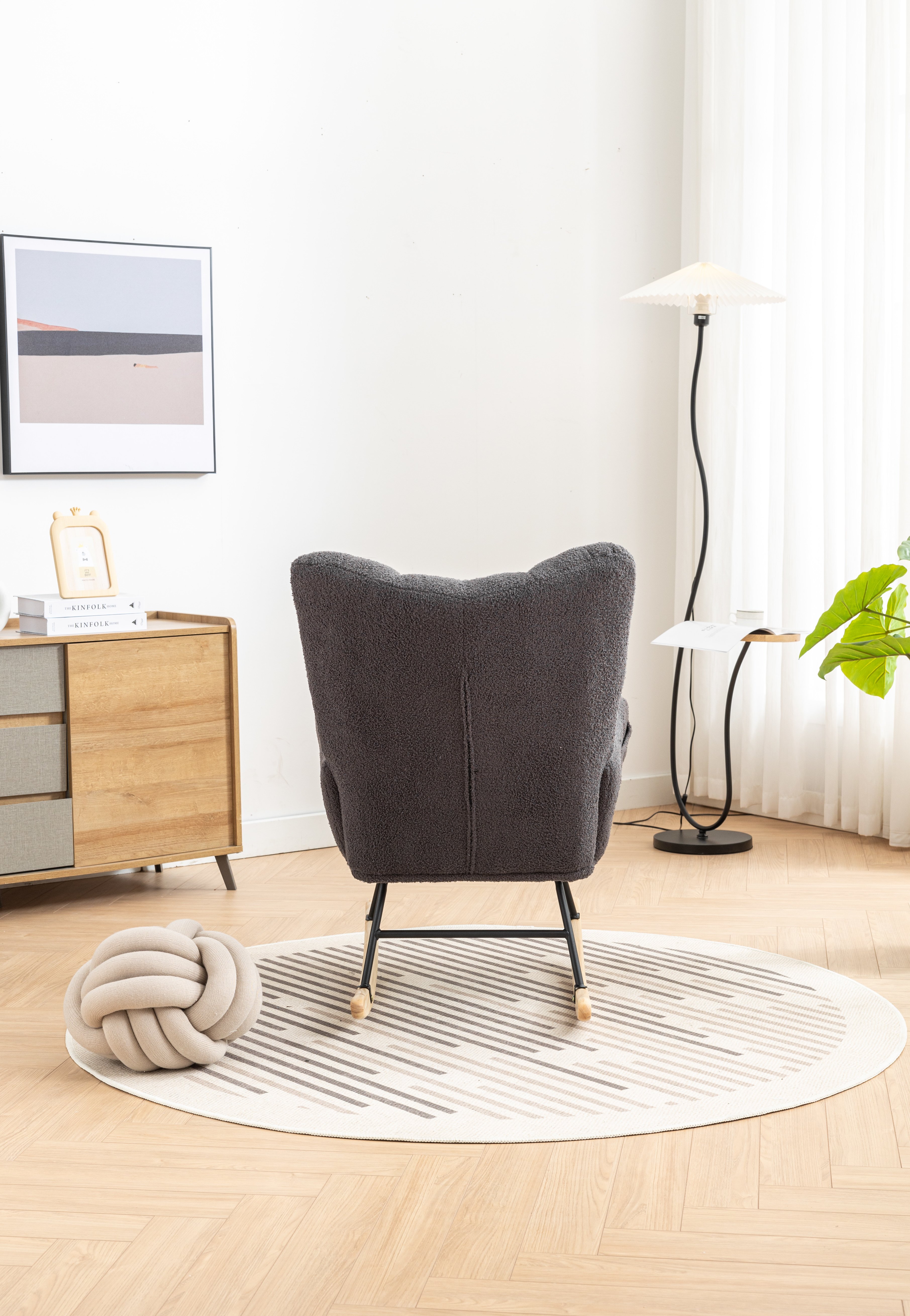Rocking Chair, Soft Teddy Velvet Fabric Rocking Chair for Nursery, Comfy Wingback Glider Rocker with Safe Solid Wood Base for Living Room Bedroom Balc