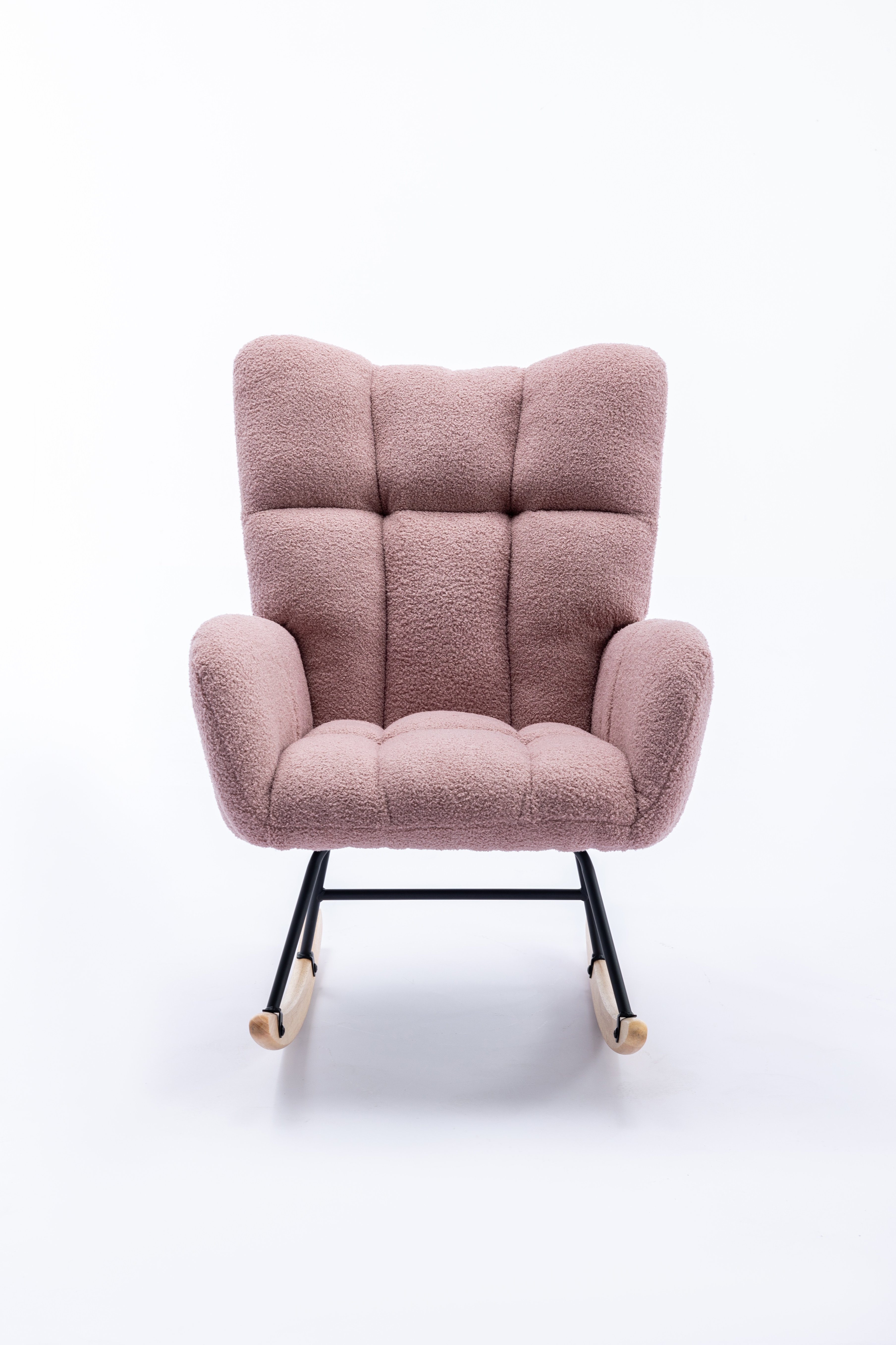 Home > Rocking Chair, Soft Teddy Velvet Fabric Rocking Chair for Nursery, Comfy Wingback Glider Rocker with Safe Solid Wood Base for Living Room Bedroom Balc