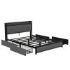 Home > Queen Bed Frame with LED Headboard, Upholstered Bed with 4 Storage Drawers and USB Ports, Dark Grey