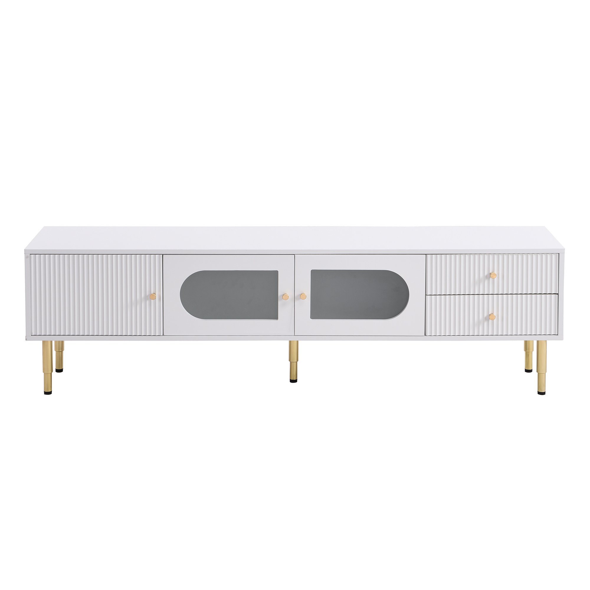 [ Unique Design ] We chose elegant white as the main color of this TV cabinet. In order not to make the entire TV cabinet look too monotonous, we chose golden cabinet legs to embellish it. The overall color-blocking design makes this TV cabinet simple and rich in design.